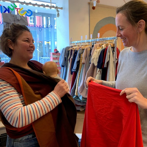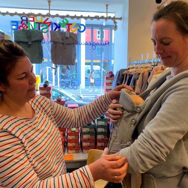 Vom neugeborenen Baby bis zum Kleinkind haben wir passende Tragehilfen im Sortiment. Die unterschiedlichen Tragetücher und Tragen dürft Ihr unter professioneller Anleitung bei uns anprobieren. Wir helfen Euch gerne, die richtige Trage für Tragende und Kind zu finden. Kommt gerne gemeinsam zum Ausprobieren und Probe tragen zu uns. Wir zeigen Euch verschiedene Bindetechniken und stellen die Tragen auf Eure Bedürfnisse ein. Schwanger könnt Ihr bereits ein Tragetuch und weichere Tragen anprobieren, für die Komforttragen empfehlen wir mit Kind zum Probieren zu kommen. Marken, die wir lieben:Babylonia, Ergobaby, Manduca, Storchenwiege, Wildride